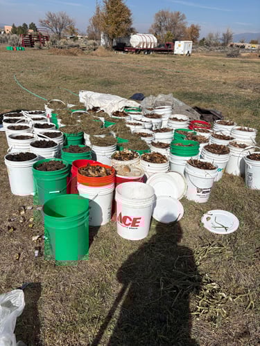 Zack Vignola, co-owner, has been composting with any organic waste he came across since 2021, offering a free food waste drop off service at the Taos Farmer's Market in the summers of '23 and '24 and picking up food waste from a handful of local households.